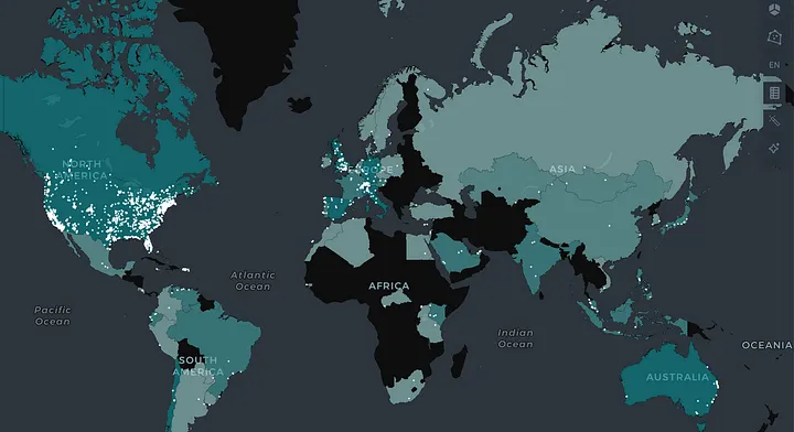 Since AlphaGeo launched two years ago, we’ve onboarded more than a dozen major institutions as clients across major sectors spanning real estate, asset management, insurance and more. With our unique geospatial index foundation covering every terrestrial coordinate in the world, we’ve enabled clients to collect data on more than 30,000 assets located in more than 2,500 cities across 64 countries. The map highlights the coordinates we’ve analyzed across the globe.
