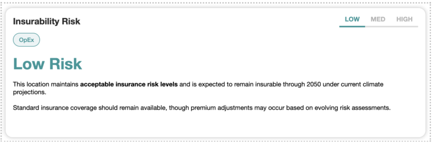 These trends make clear why investors need to start thinking about insurance impact on valuations today. Yet most lack reliable, forward-looking data to support such modeling. This is why we’ve developed not one but two complementary metrics on insurance impact: Insurability Risk (availability) and Insurance Cost (affordability and valuation pass-throughs).